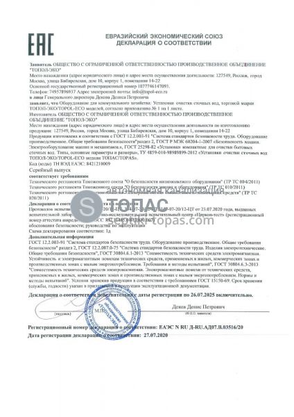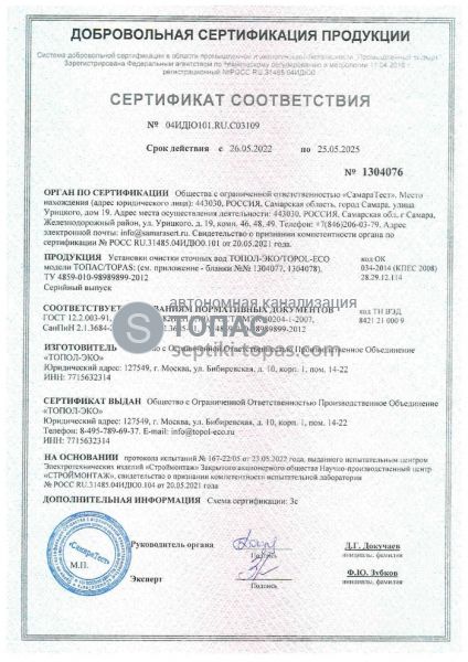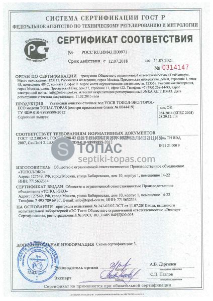 Септик ТОПАС-30 поставляются полностью укомплектованными и готовыми к эксплуатации. Изготавливается и поставляется в едином корпусе. Стандартная комплектация: